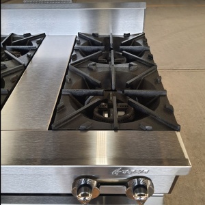 - Estufa industrial 6 parrillas con amplio espacio entre ellas, potentes quemadores «imperiales» de hierro vaciado.